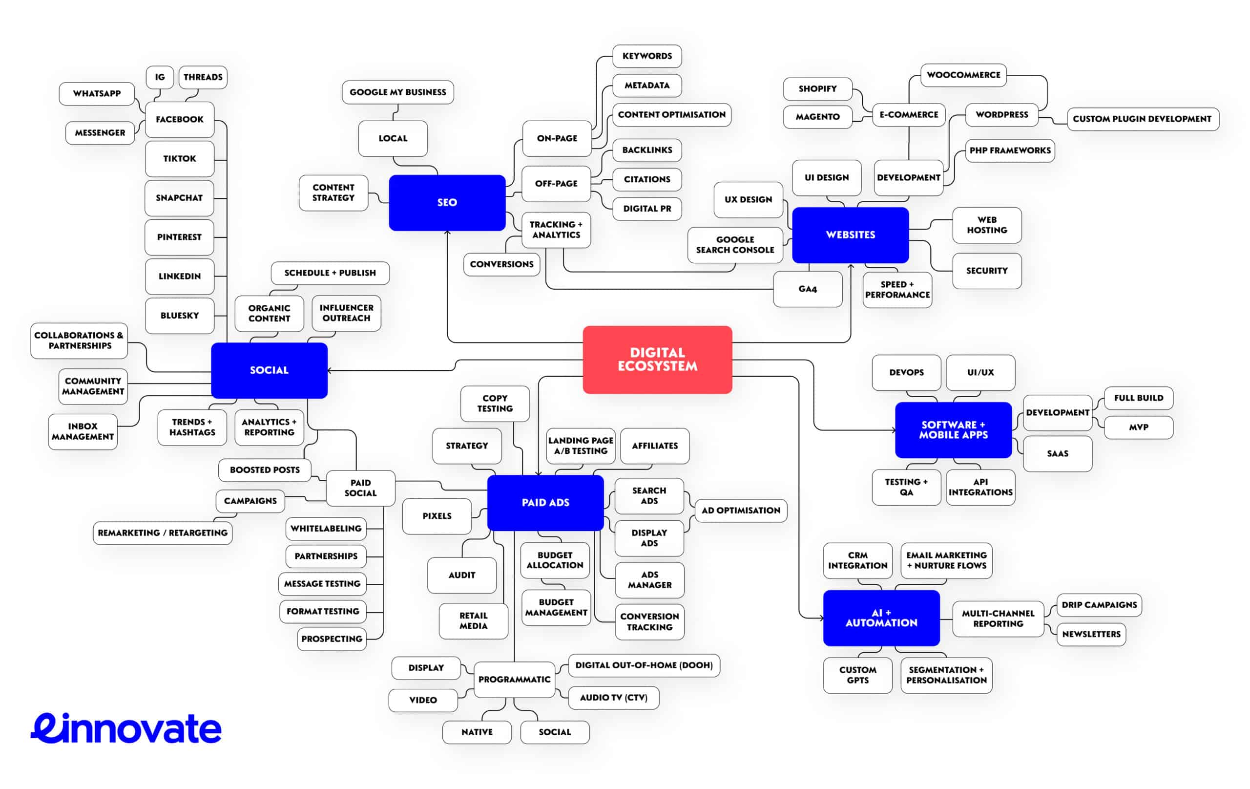 That’s why we’ve launched the EI digital ecosystem diagram. It’s a simple, top-level map of the marketing and technology areas that shape growth, plus the practical building blocks that make them work together.