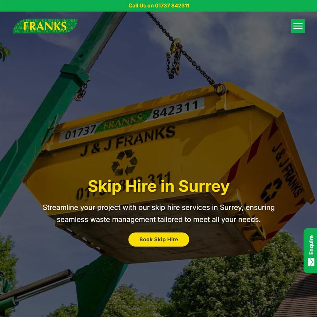 We partnered with J&J Franks to modernise their online presence for customers across Surrey and Sussex. The new site improves navigation for skip hire and waste services, loads fast on mobile, and supports local SEO so nearby customers can find them with ease.